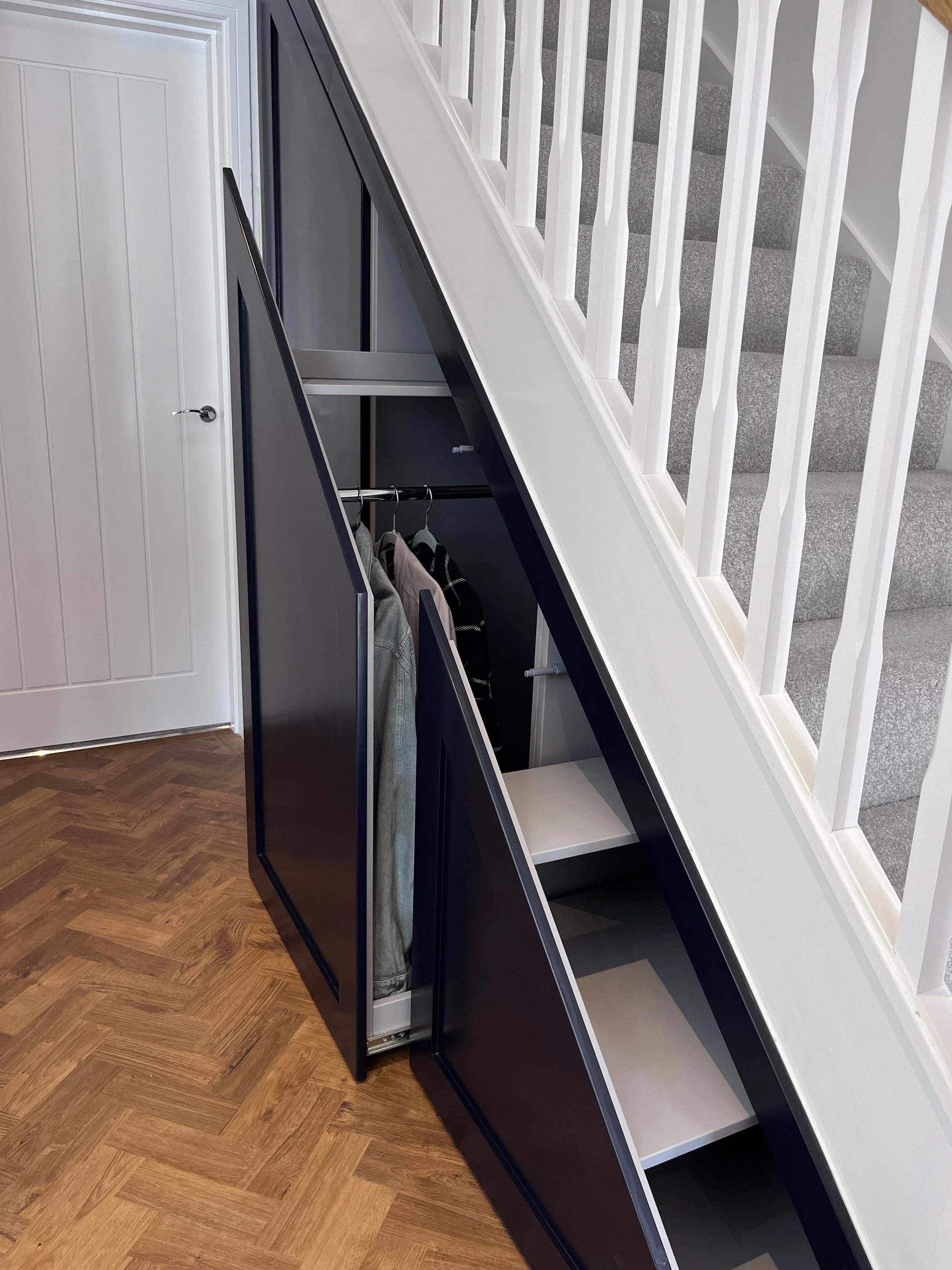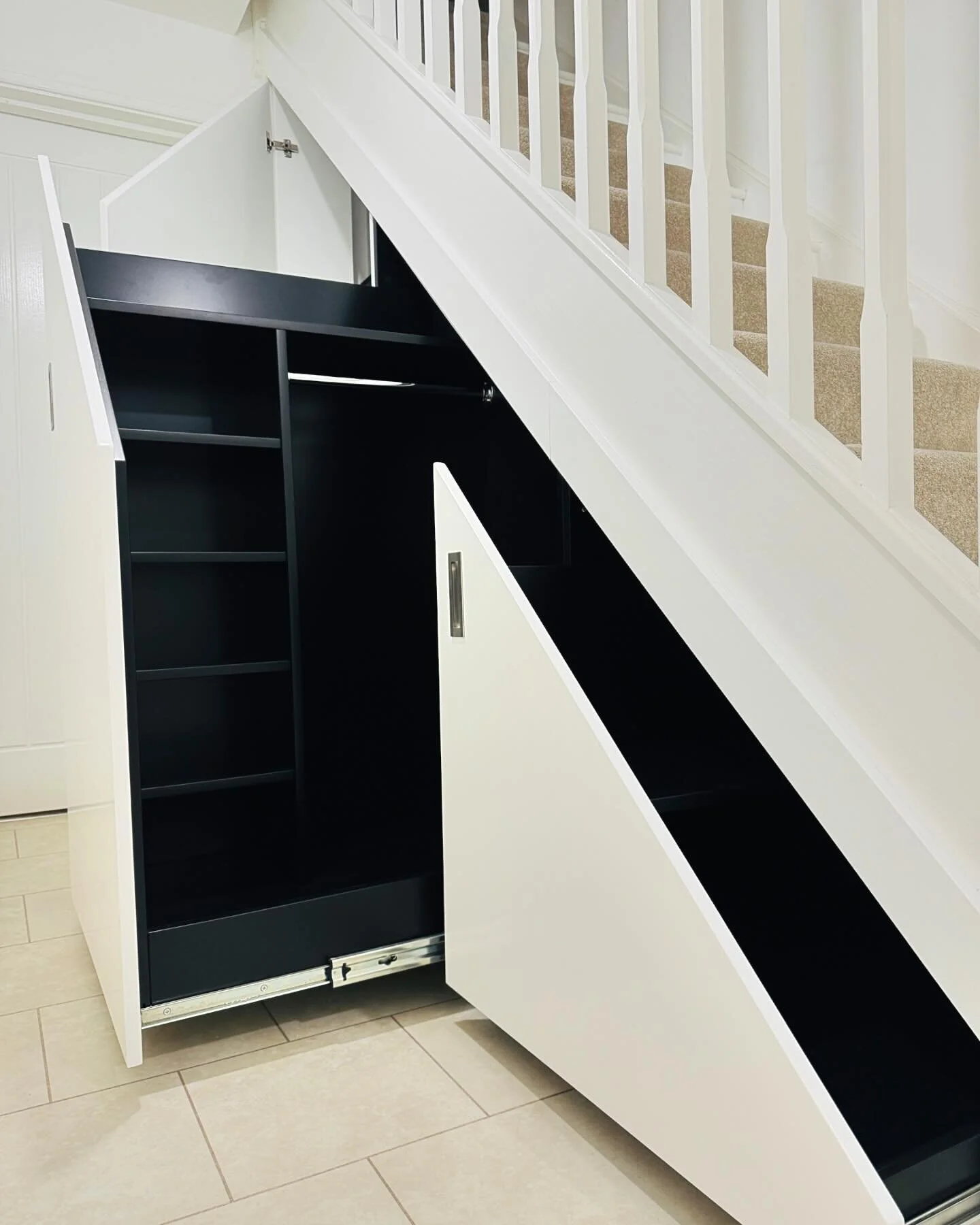 Understairs areas are often wasted, becoming a dumping ground for clutter or forgotten about entirely. With our understairs storage cabinets, you can finally make the most of this space. Our cabinets are intelligently designed to provide ample storage for a variety of items, from shoes to sports equipment or even a wine collection. No matter what you want to store, we have a solution that fits.